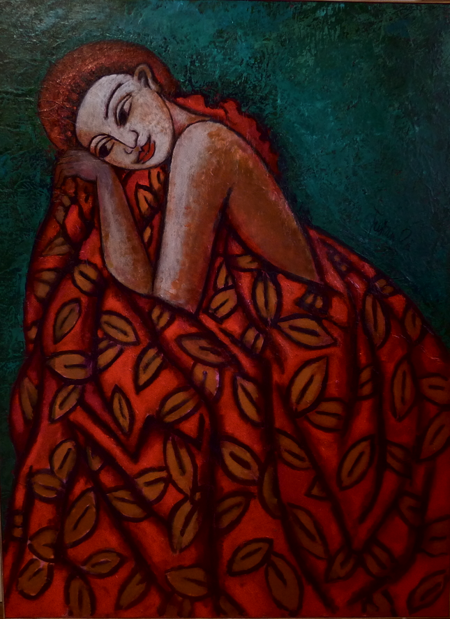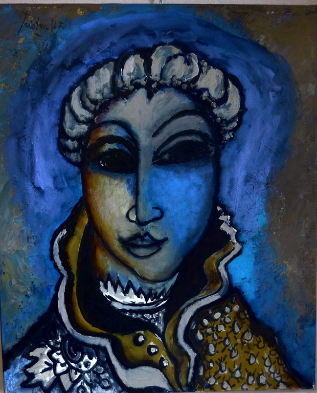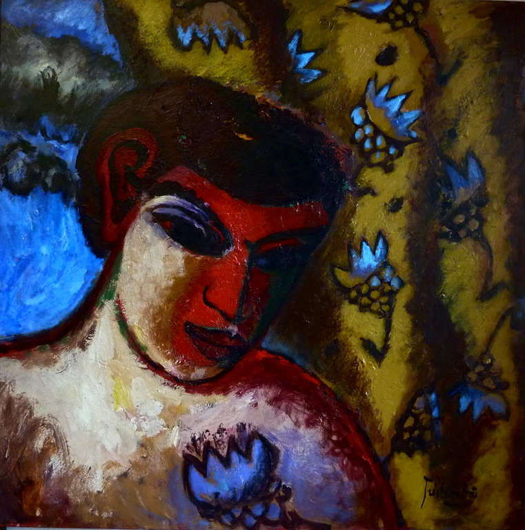 hommage à Claudius 1 m x 1,20m | tombée de nappe 80cm x 80 cm | Tero Tarmani 80cm x 80cm | retour du fleuve 60 cm x 60cm | portrait à Samarcand 60 cm x 73 cm |